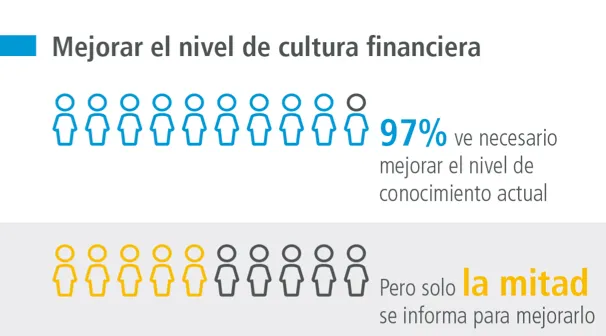Como se suele decir en muchos ámbitos de la vida, "el primer paso es reconocerlo". Y de eso vamos sobrados, según esta encuesta: uno de cada cuatro españoles cree que su educación financiera es insuficiente y que suspendería en un examen de cultura financiera básica. El 40% cree que el nivel en España respecto a conocimientos económicos es muy bajo, y siete de cada diez lo consideran inferior al de otros países de Europa.