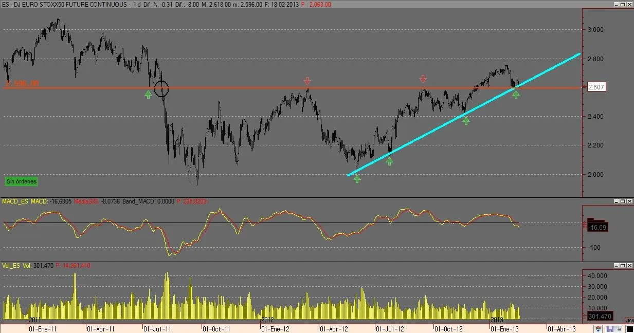 Y para acabar os dejo la situación técnica en 3 grandes índices.Los tres se encuentran justo encima de las directrices alcistas.