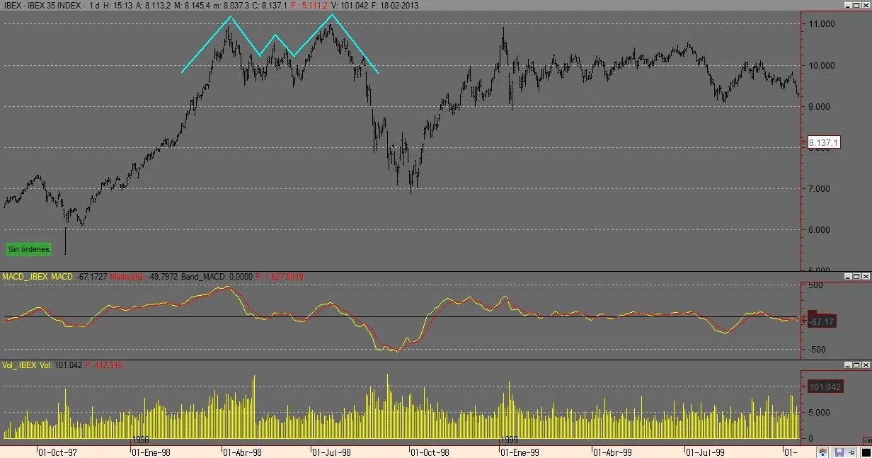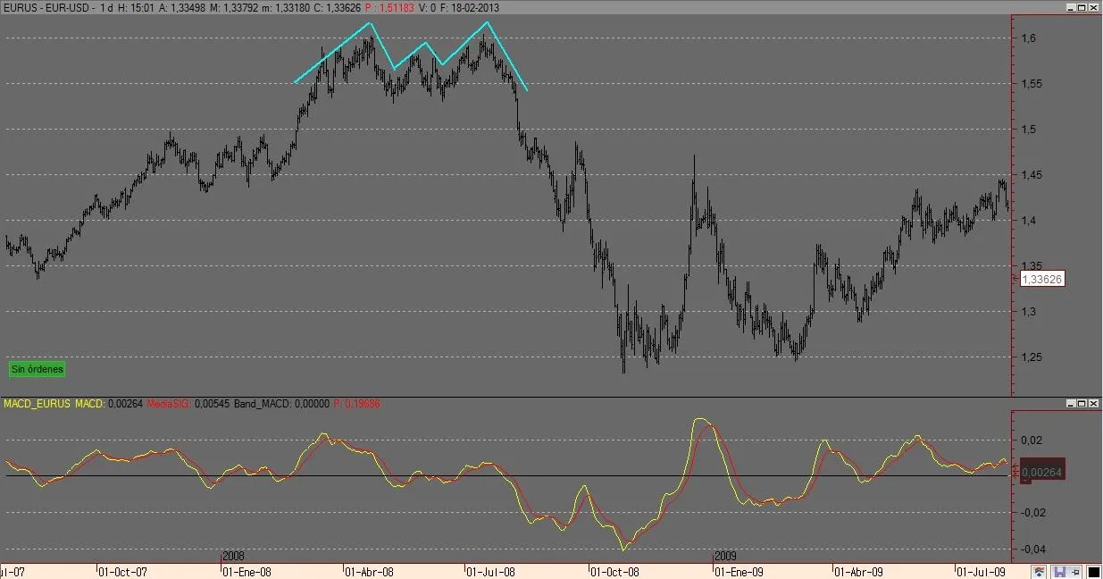 No entraré en detalles de su formación por que es muy extenso e incluso puede herir alguna sensibilidad a los no seguidores del AT:-), pero para poner algún ejemplo práctico ; el murciélago se produjo en el EUR/USD en los máximos de 2008 cuando cotizaba en 1.60 y en el Ibex 35 en 1998.En ambos casos se produjeron caídas del -30%.