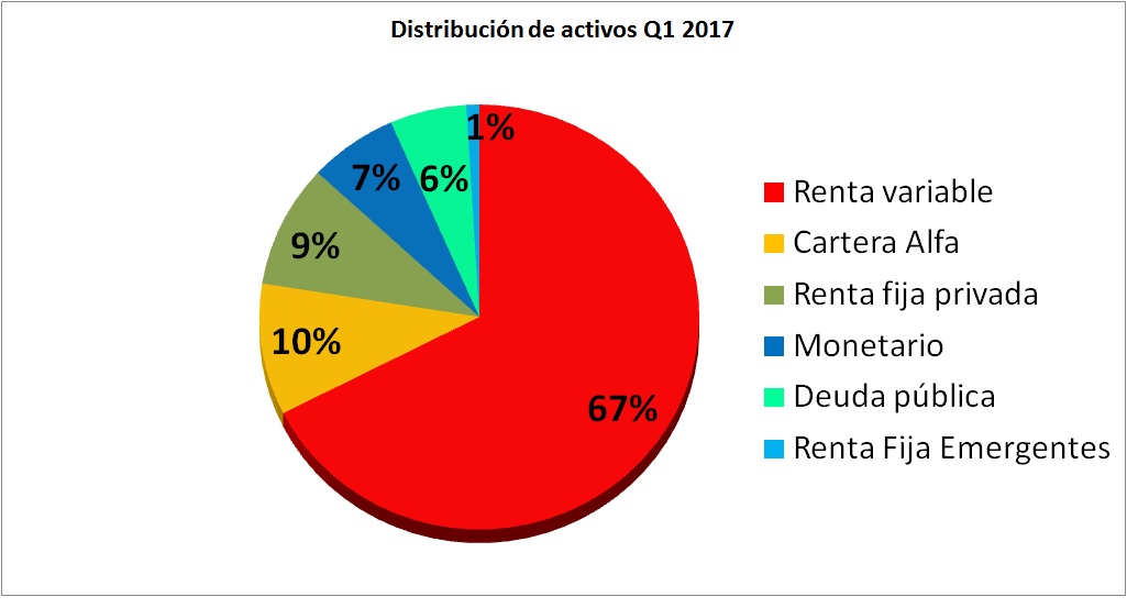 El gráfico muestra las posiciones del fondo a cierre del primer trimestre de 2017: