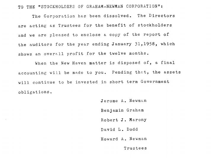 Benjamin Graham creó su propia compañía junto a Jerome Newman, The Graham- Newman Partnership y aunque en la actualidad no se conserva un registro de las rentabilidades conseguidas. Se estima que la rentabilidad media anual conseguida entre 1.936 y 1.956 fue de entre un 15 y un 20%.