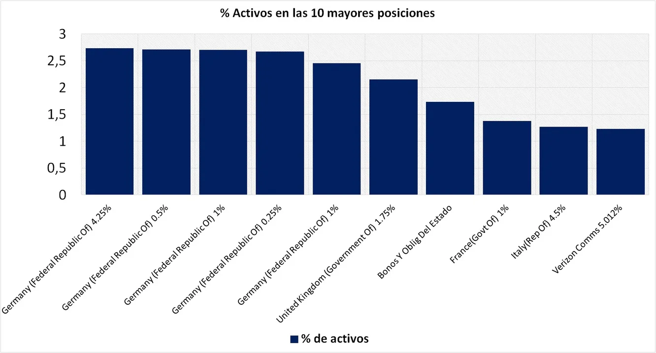 A continuación se muestra el top 10 posiciones en cartera en los que se encuentra invertido el 21,01%: