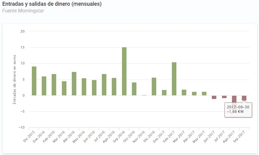 No ocurre lo mismo en el caso del fondo gestionado por Álvaro Guzmán. Y es que es el quinto mes consecutivo en el que sale dinero de azValor internacional, de esta manera el fondo cierra el trimestre con unas salidas de algo más de 20 millones de euros, lo que sitúa su patrimonio alrededor de los 1.003 millones de euros.