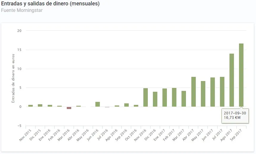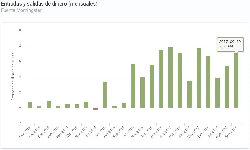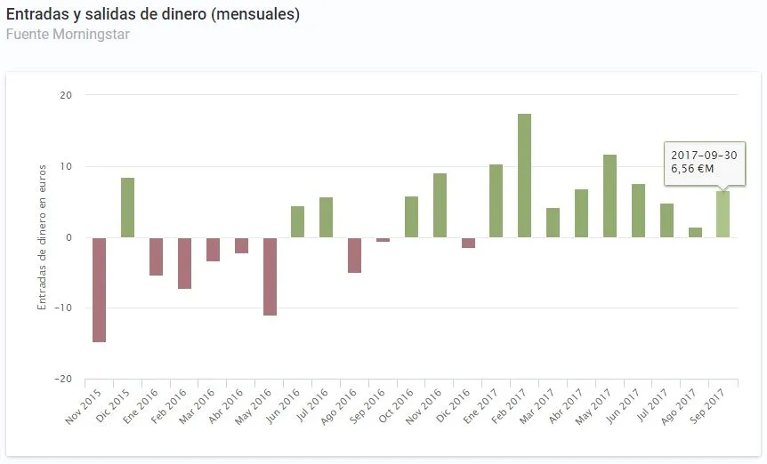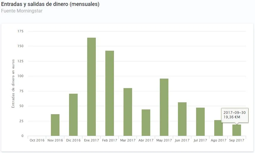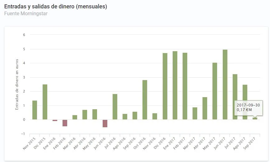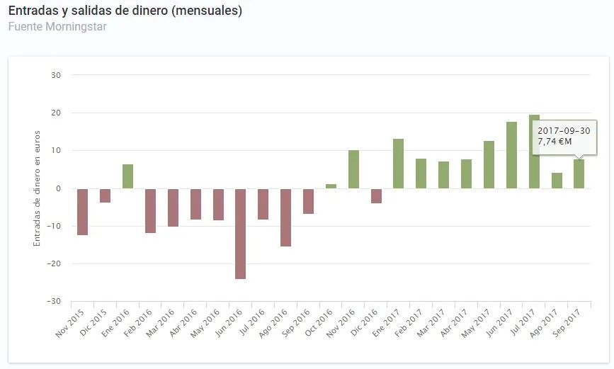 En cuanto a Bestinver Bolsa, recibe entradas de dinero durante este mes de septiembre, tras dos meses de salidas, según Morningstar. En lo que va de año el fondo acumula una rentabilidad del 9,62%.