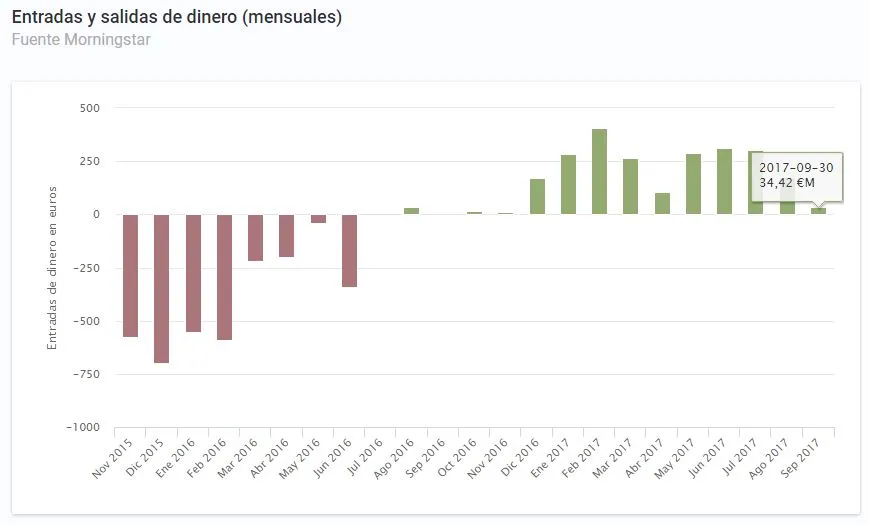 La semana pasada repasábamos los fondos más rentables entre los más seguidos en Finect durante el tercer trimestre del año. Hoy vamos a analizar las entradas y salidas de dinero que han tenido estos fondos de inversión este mes y su evolución a lo largo del trimestre.