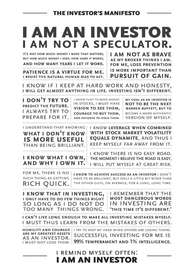 Os dejamos además también una imagen del "The Investor's Manifiesto" sobre el que ya escribimos hace tiempo y que recoge una serie de principios e ideas que ayudan a tomar decisiones a la hora de invertir.