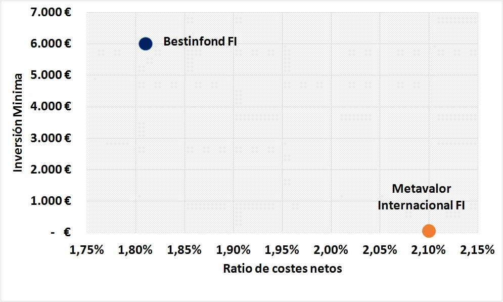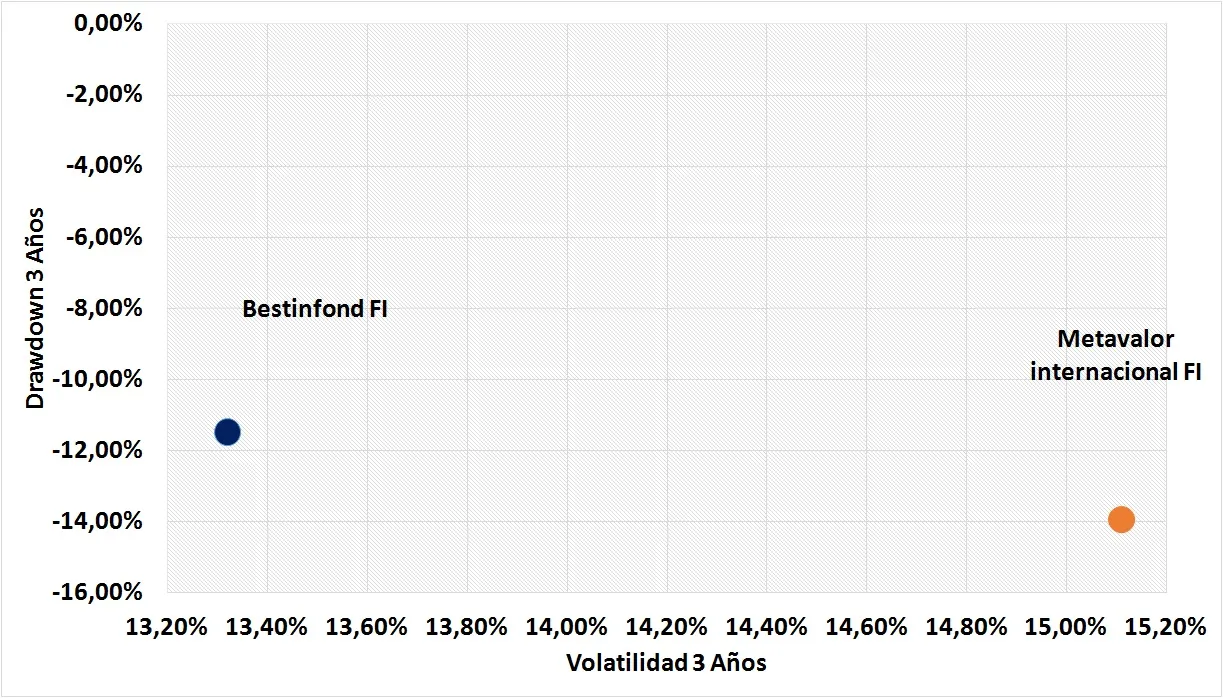 Esta semana un compañero me comentaba que su hermano quería invertir unos ahorros en un fondo de inversión y que estaba indeciso entre invertir en Bestinfond FI o Metavalor Internacional FI. Por eso voy a realizar uno de nuestros clásicos "Cara a Cara". Hay que recalcar que el fondo de Metavalor no cuenta con un historial tan largo como el de Bestinver, por eso no será posible analizar algunas de las variables y utilizaremos un horizonte temporal de 3 años (el máximo posible en esta ocasión). El fondo de Bestinver pertenece a la categoría RV Europa Cap. Flexible mientras que el fondo de Metavalor pertenece a la categoría RV Global Cap. Flexible.