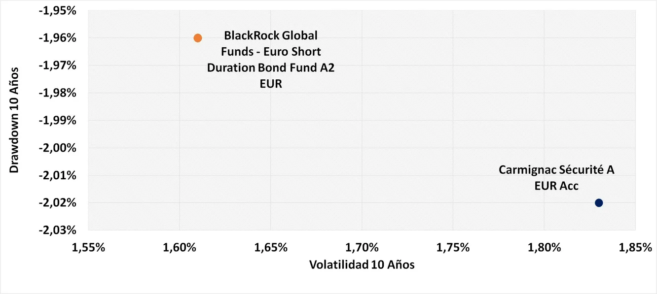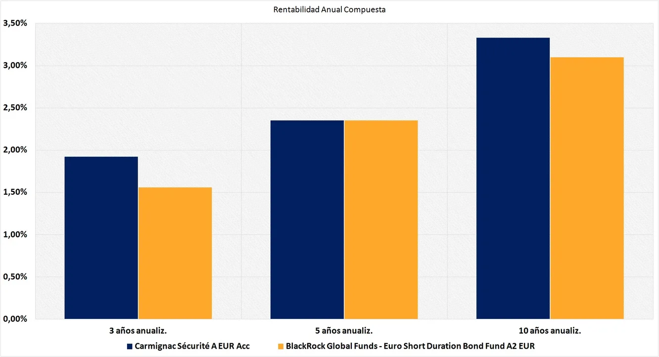 Hará ya aproximadamente más de dos semanas cuando @agenjordi proponía una comparativa entre dos fondos de renta fija, el Carmignac Sécurité A EUR Acc y el BlackRock Global Funds - Euro Short Duration Bond Fund A2 EUR. Ambos fondos están categorizados como RF Diversificada Corto Plazo EUR.
