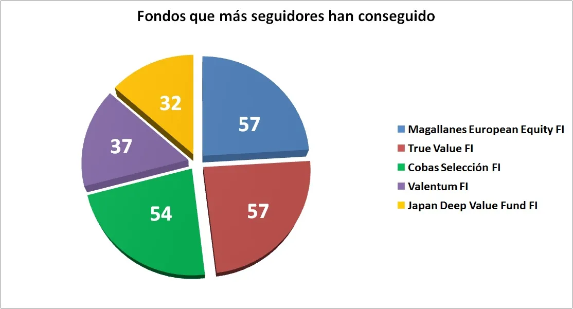 Tal y como podemos observar Magallanes European Equity y True Value han sido los fondos que más seguidores han conseguido durante este mes de enero. Cobas Selección les sigue de acerca y a pesar de no entrar dentro del top 10 consigue 52 seguidores alcanzando ya los 418.