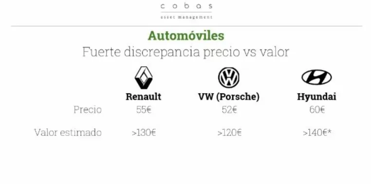18:11 "Llevamos ya cuatro años en la que los mercados europeos han caído un 10%. Esto no es la base para un cataclismo como algunos avecinan. Ahora está más barato que hace dos años y estamos encontrando buenas compañías a buenos precios. Hemos aprovechado para aumentar exposición en automóviles BMW, Hyundai, Renault o Porsche con las caídas"