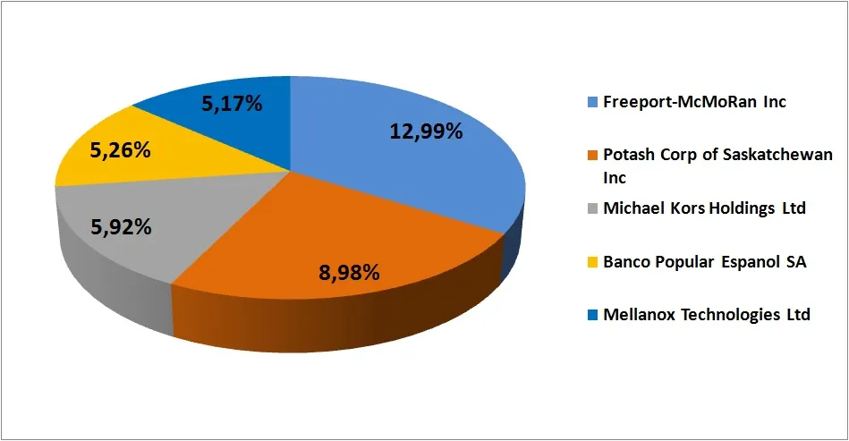 A cierre de septiembre de 2016 estas eran las 5 principales posiciones en cartera. Más del 60% estaba localizado en acciones de compañías estadounidenses. Por sectores dominaba las inversiones en industria y materiales básicos. Aunque las fuertes revalorizaciones de la Sicav se deben en gran medida a su apuesta por los valores cíclicos, favorecidos en 2016 con la recuperación de las materias primas y las expectativas de crecimiento tras la victoria de Donald Trump.