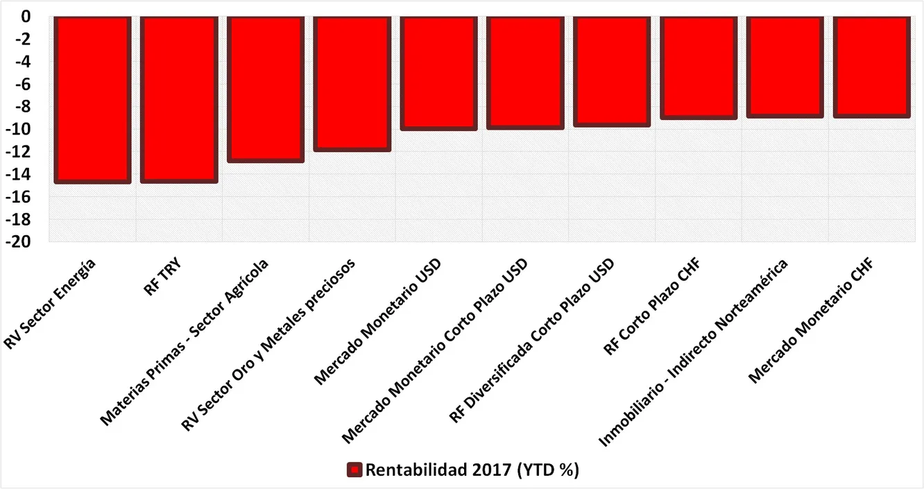 Peores categorías de fondos de inversión en 2017