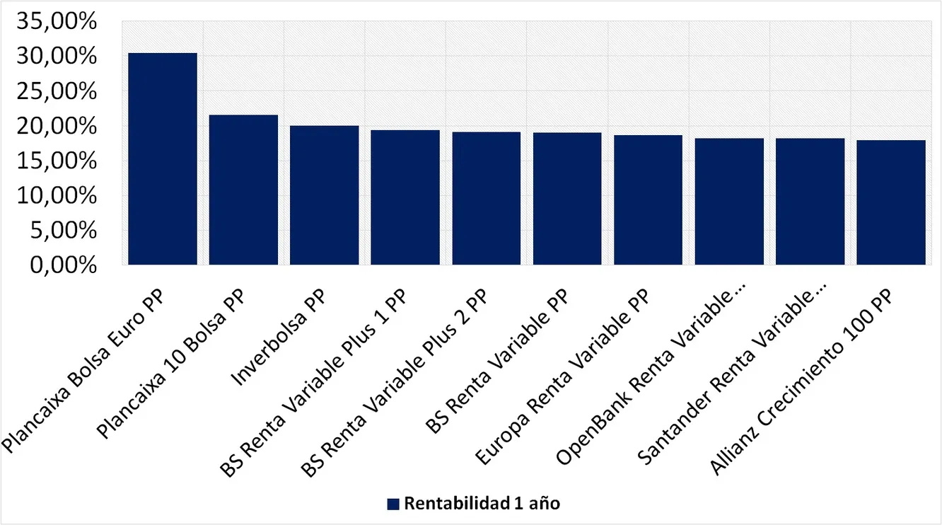 | Plancaixa Bolsa Euro PP | 30,45% | Aviva y Tú Renta Variable PP | 12,78% | |