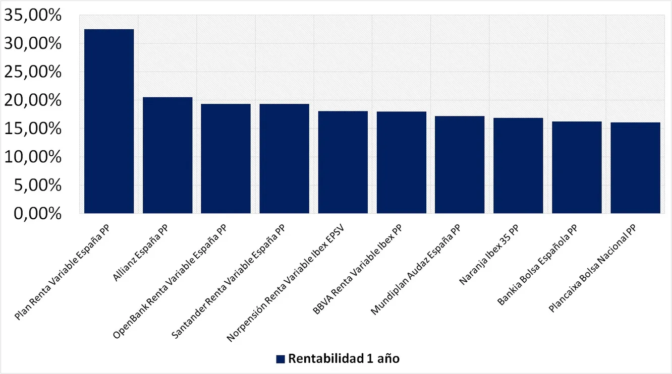 | Norpensión Renta Variable Ibex EPSV | 18,04% | Cajamar Renta Variable PP | 9,24% | |