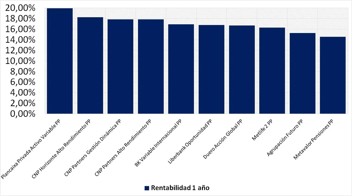 | Plancaixa Privada Activo Variable PP | 19,96% | Metavalor Pensiones PP | 14,87% | |