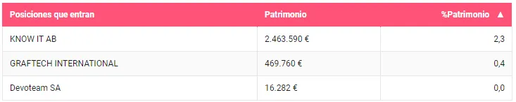 Tres han sido las compañías incorporadas en cartera. Know IT, ha sido la principal apuesta del trimestre mientras que el peso con el que entran en Graftech y Devoteam es residual. Know it es una consultora centrada en la tecnología de la información para el mundo de los negocios digitales con sede en Suecia.
