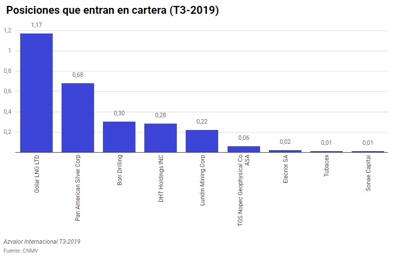 Durante el tercer trimestre de 2019 no se ha producido ninguna entrada nueva en la cartera internacional. Sin embargo, sí que han incrementado peso en algunos valores como CIR, Golar LNG, y Teekay Corp.