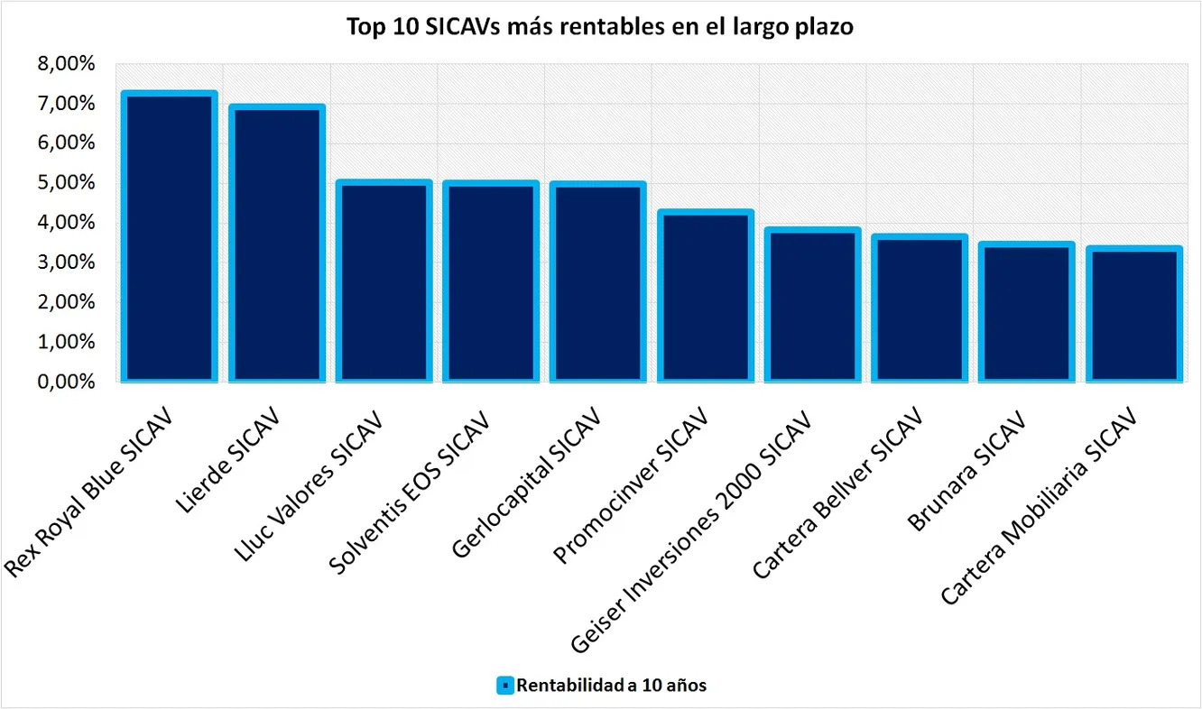 No todas cuentan con un track record de 10 años. A continuación se muestran las 10 SICAVs más rentables en el largo plazo: