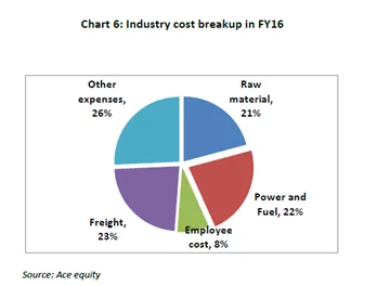 Una vez que hemos visto que la demanda tenderá a crecer en los próximos años a un ritmo estable, hay que evaluar que repercusión podrían suponer los costes, puesto que un gran incremento de los mismos podría contrarrestar la aportación positiva del incremento de la demanda. Como muestra la imagen inferior los principales costes se dividen entre materiales básicos (21%), energía (22%) y transporte (23%).
