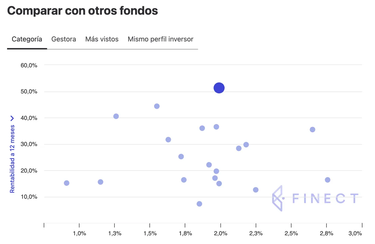 Si lo comparamos con otros fondos de su misma categoría, lo encontramos como uno de los más rentables de los últimos doce meses.