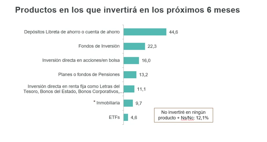 Para finales del pasado ejercicio varió la intención de compra de productos financieros y de inversión. Según ha reflejado el índice, el 44,6% de los inversores y ahorradores mantendrán su liquidez en depósitos, libretas y cuentas de ahorro. Esta visión se alinea con el mantenimiento del perfil conservador de los españoles que deciden rentabilizar su dinero. En concreto, el 36,5% de los encuestados han señalado como principal objetivo "no perder dinero".