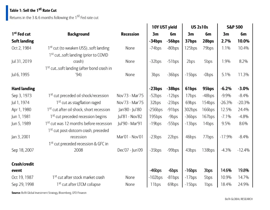 El banco estadounidense ha incluido esta recomendación en su último informe The Flow Show, publicado el viernes pasado y elaborado por el estratega de inversiones Michael Hartnet. "Los bonos corporativos de EE.UU. son los que mejor dicen si el recorte es en aterrizaje suave o duro... Nosotros decimos aterrizaje duro, por lo tanto, 'vender el primer recorte'", ha señalado Hartnet en el informe.