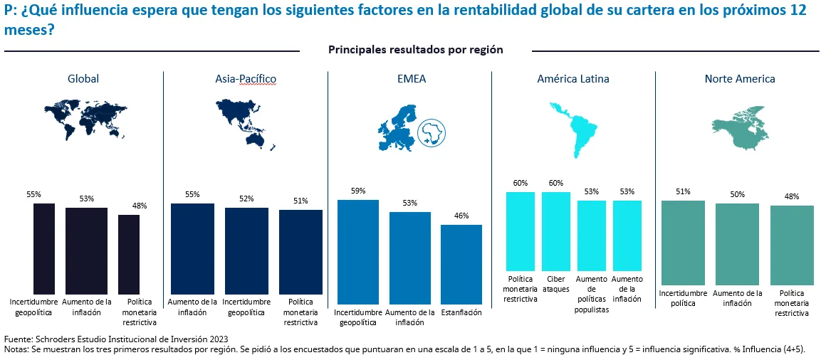 Más de la mitad de los inversores institucionales han apuntado a que la incertidumbre geopolítica y el aumento de la inflación serán los factores que más impactarán en la rentabilidad de las carteras en los próximos 12 meses.
