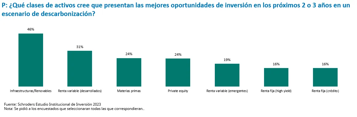 La mayoría de los inversores institucionales han señalado a la transición a la energía de cero emisiones netas como una fuente de oportunidades de inversión. Esto se debe a que la descarbonización de la economía estimulará la innovación, según la opinión de más de dos tercios de los encuestados,