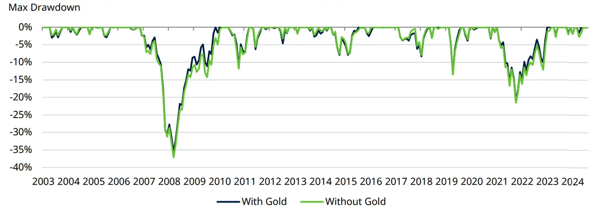 Una pequeña asignación a oro proporciona un beneficio adicional para cubrir la cartera