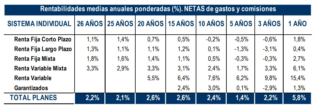 Todas las categorías de planes de pensiones individuales han logrado ganancias a lo largo del último año. Si bien quienes mejor han salido en la foto han sido los planes que invierte en renta variable, que han cosechado una revalorización interanual del 15,4%.