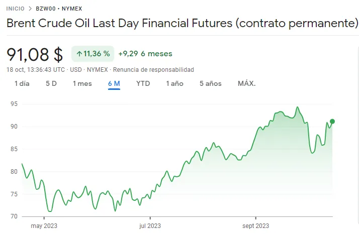 El conflicto bélico en Oriente Medio se recrudece. El bombardeo de un hospital en Gaza, que ha dejado más de 500 muertos, ha generado protestas en muchos países árabes. Ante el aumento de la tensión, el precio del barril de crudo de Brent —utilizado como referencia en Europa— ha vuelto a escalar este miércoles hasta situarse por encima de los 91 dólares.