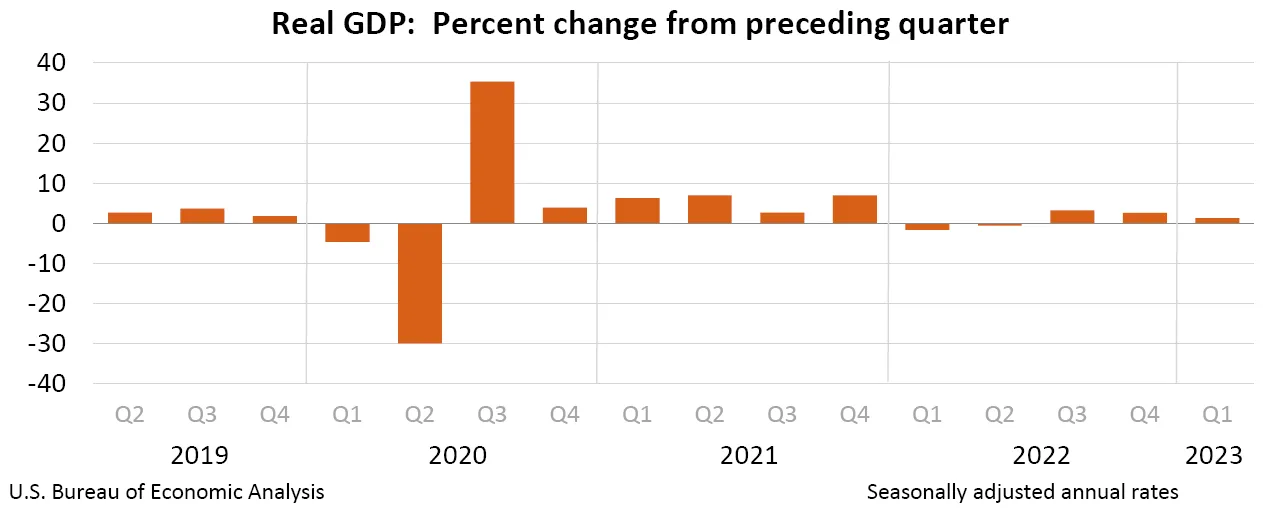 La economía de Estados Unidos ha vuelto a sorprender. El producto interior bruto (PIB) de EEUU ha aumentado un 1,3% en el primer trimestre de 2023 respecto al mismo periodo del año pasado, según ha publicado este jueves la Oficina de Análisis Económico dependiente del Departamento de Comercio de Estados Unidos.