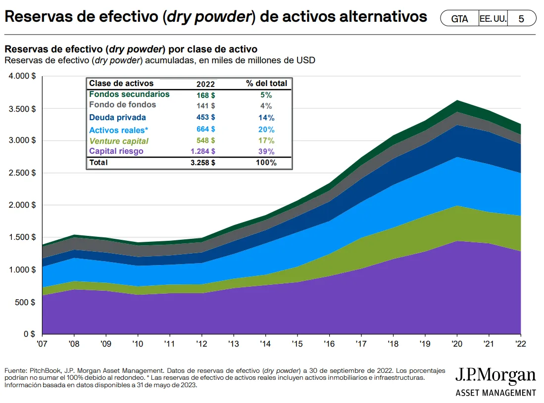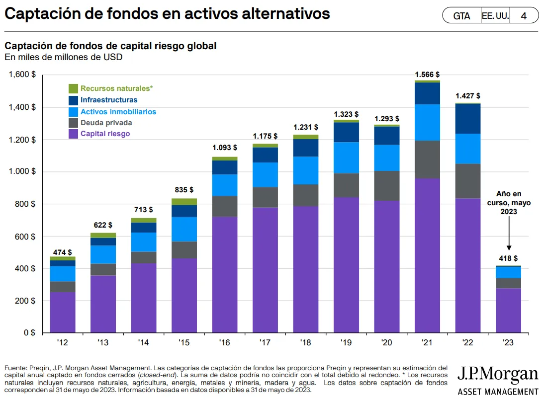 A pesar de esa menor captación de fondos, las reservas de capital todavía están en niveles altos. "Las reservas de capital destinadas a activos alternativos han disminuido algo en los últimos dos años, pero siguen siendo unos niveles muy altos gracias a esos años extraordinariamente fuertes que hemos tenido en la última década", asegura.
