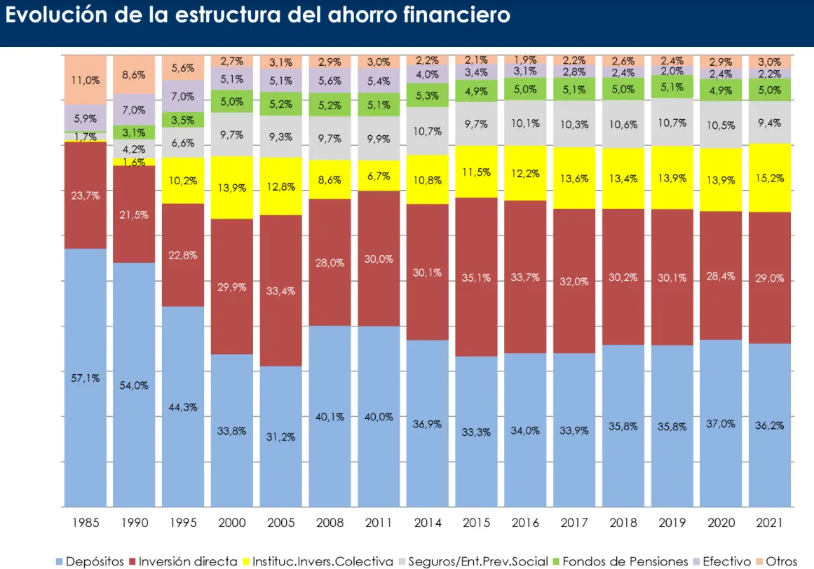 Este menor incremento puede dar una impresión equivocada sobre la preferencia de los ahorradores españoles por un tipo de producto. Los depósitos todavía concentran la mayor parte del ahorro financiero de los españoles, un 38,4% del total. En concreto, las familias guardan más de 1 billón de euros en estos productos.