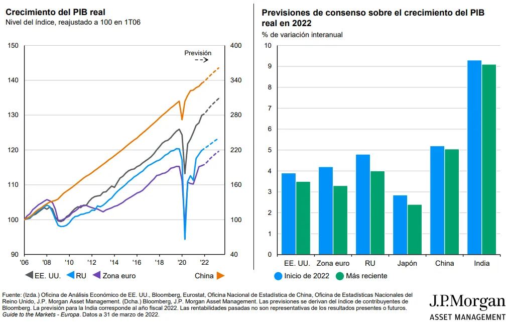 Este crecimiento no va a ser igual en todo el mundo, sino que va a haber diferencias regionales. Europa se va a ver más impactada por el conflicto bélico. “Nosotros en enero esperábamos que Europa recortara posiciones respecto a Estados Unidos, que había crecido más. Eso no va a pasar, porque Europa es muy dependiente energéticamente. Damos un crecimiento plano para la primera parte del año”, ha afirmado.