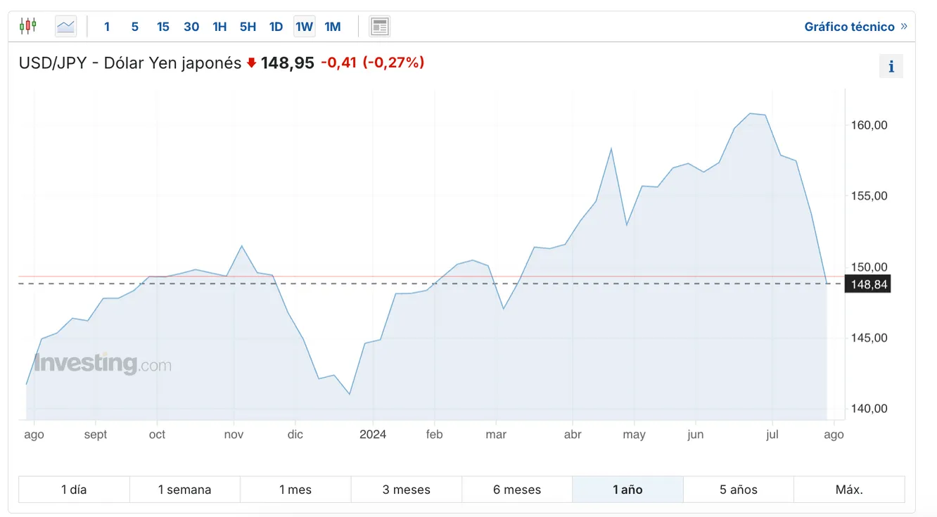 El yen se ha visto notablemente impulsado por esta decisión del Banco de Japón. La moneda nipona ha pasado de cambiarse unos 162 yenes por dólar a mediados de julio a unos 149 yenes por dólar en la actualidad. Se trata de su nivel más alto desde el pasado mes de marzo.