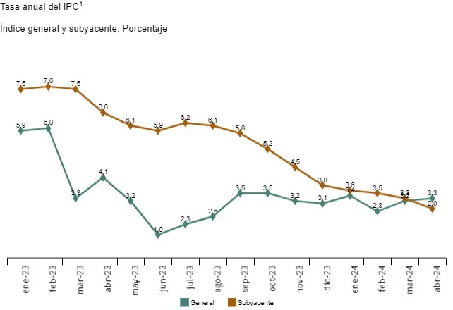 En cambio, la inflación subyacente —que no tiene en cuenta los precios de la energía y de los alimentos frescos al considerarlos más volátiles— se ha reducido hasta el 2,9% en abril, según el dato anticipado por el INE. Es decir, cuatro décimas por debajo del 3,3% registrado en marzo.