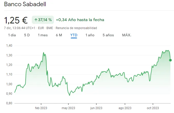 Así ha evolucionado la cotización de Banco Sabadell en 2023:
