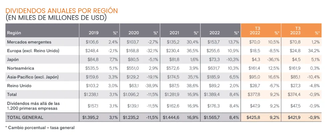 Así han evolucionado los dividendos por regiones: