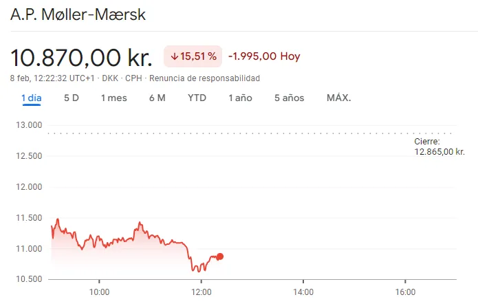 Estas cuentas y, sobre todo, la suspensión del programa de recompra de acciones no ha gustado a los inversores. Tras la presentación de estos resultados, el grupo A.P. Møller-Mærsk ha sufrido en Bolsa. Las acciones del grupo danés han caído más de un 15% en la sesión.