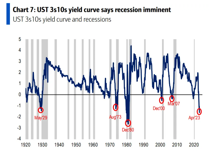 Más aún, esta inversión de la curva se ha producido siempre en las últimas recesiones en EEUU. "Las 10 recesiones registradas en EEUU estuvieron precedidas por una política monetaria restrictiva y una curva invertida de los intereses en la deuda de tres meses y 10 años y/o de dos años y 10 años", asegura el informe.