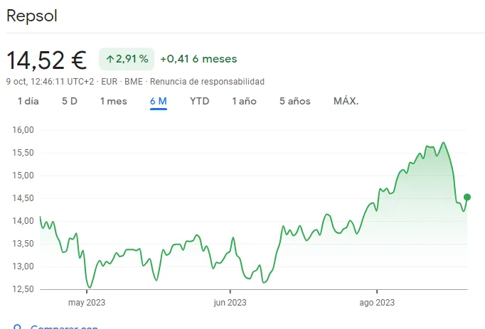 Así ha evolucionado la cotización de Repsol en los últimos seis meses: