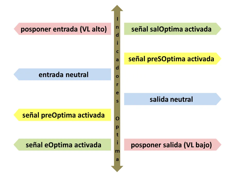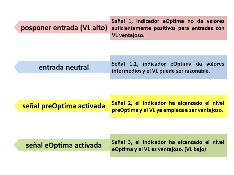 • Señal 1, posponer entrada, indicador eOptima no da valores suficientemente positivos para entradas con VL ventajoso. (VL alto)