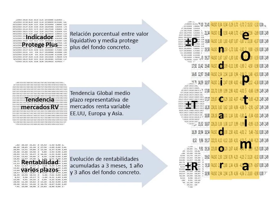 En síntesis la filosofía básica es que eOptima de valores positivos para entrada en los fondos a valores liquidativos ventajosos. Para ello utiliza y procesa los datos aportados bajo la lógica de que a más negativas sean las entradas más positiva será la salida.