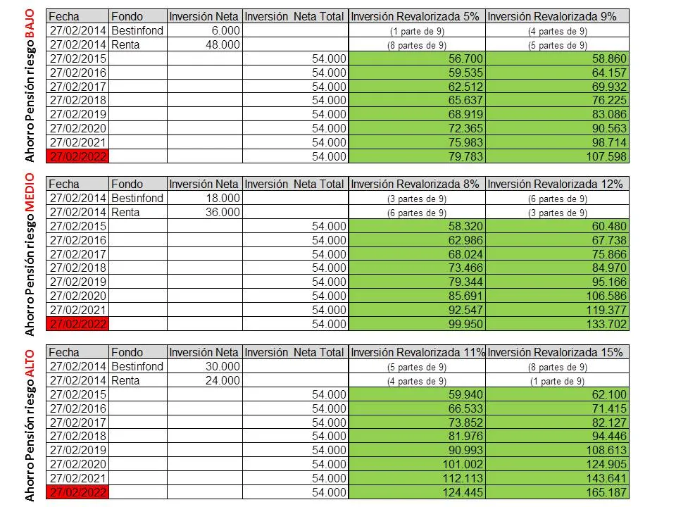 Ahorro Pensión riesgo BAJO, MEDIO y ALTO