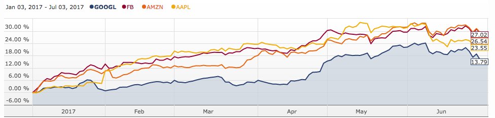 Veamos las FAANG (Facebook, Apple, Amazon, Google) desde el mes de enero (sin netflix):