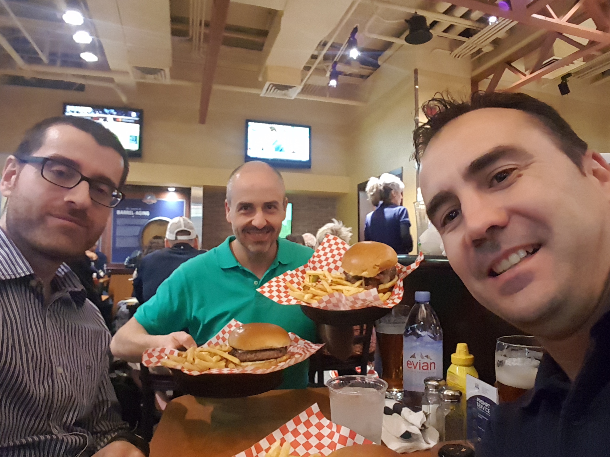 Mi jornada se inicia a las 5am, tengo que ir al aeropuerto a coger el primer vuelo Barcelona-Madrid, la hora del vuelo es a las 7,30, pero entre que desayuno, cojo el aerobús y llego con cierto margen, no puedo dormir más. Es la primera vez que cogía el Aerobús ya que suelo coger el tren, pero ha funcionado bien a esas horas que no hay tráfico. Ese primer vuelo se desarrolla sin incidencias y llego a Madrid a la hora prevista para juntarme con Vicente y Pedro, los otros 2 expedicionarios de la ruta de Finect. Ya en Madrid, nos dirigimos a por nuestra tarjeta de embarque de la conexión Chicago-Omaha. Pasamos los controles preceptivos, y el vuelo se desarrolla sin mayores incidencias, el avión de Iberia es bastante nuevo y no hay queja. Ya en Chicago, damos buena cuenta de nuestra primera comida en USA: