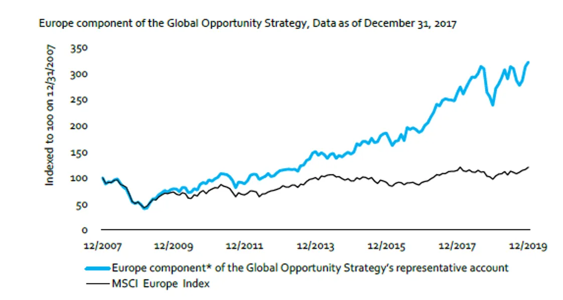 El equipo Global Opportunity lleva invirtiendo en empresas de Europa más de 12 años a través de diferentes estrategias. En el gráfico a continuación, se muestra la rentabilidad del componente europeo de la estrategia global del equipo (MS INVF Global Opportunity), desde 2007.