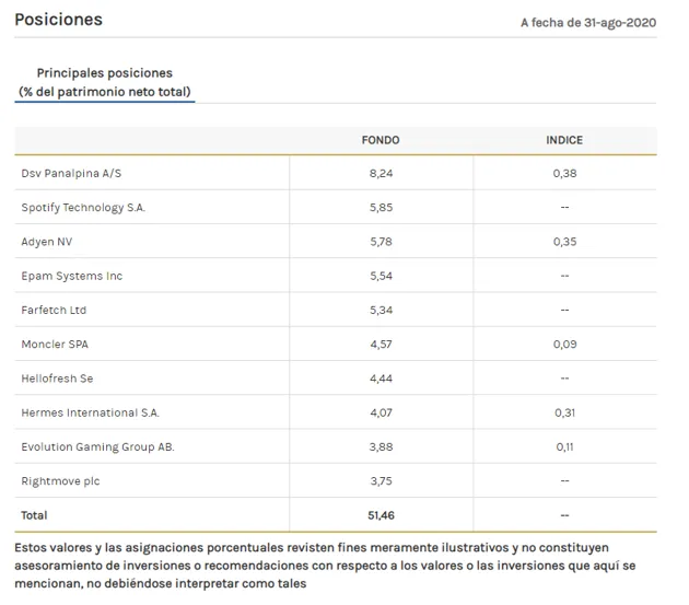 Dicho fondo gestiona una cifra cercana a los 600 millones de euros. Invierte en compañías de alta calidad en Europa de todo tipo de capitalización bursátil con ventajas competitivas sostenibles que puedan ser monetizadas a través del crecimiento y que, en su momento de compra, se encuentran infravaloradas.