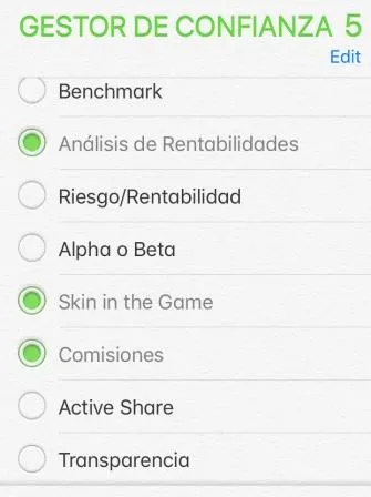 - Coherencia, Consistencia y Disciplina en el proceso: Conocer en detalle el proceso de inversión y la disciplina en su ejecución. Las cartas trimestrales y anuales deberían dar una visión sobre estos aspectos. Lamentablemente, la mayoría de las cartas se limitan a exponer simplemente datos o éxitos.